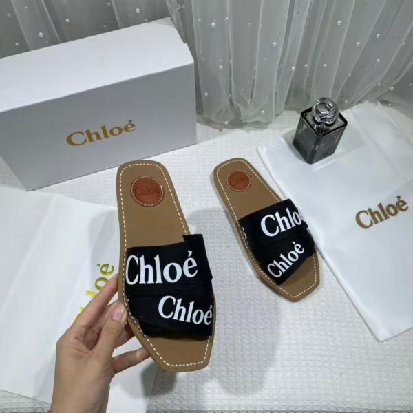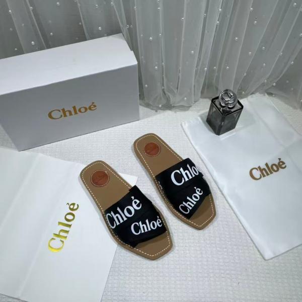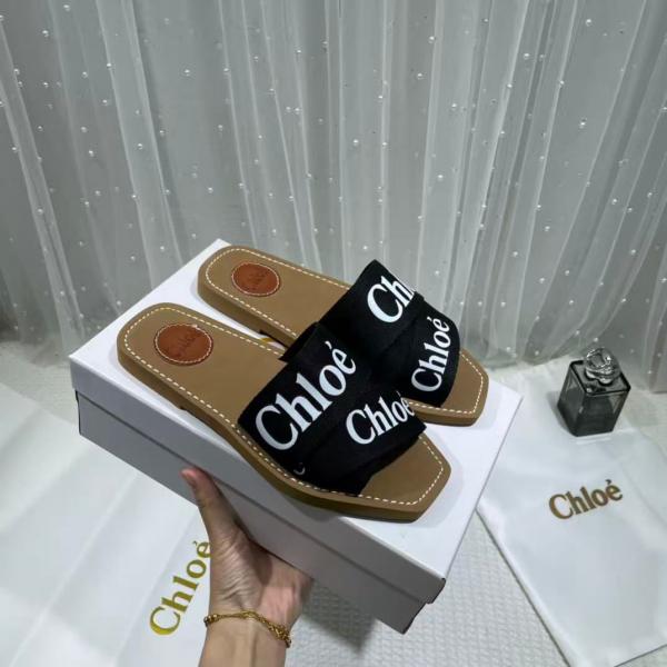 Chloe Premium Woody Slides Flat With OG Box Dust Cover Black