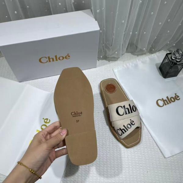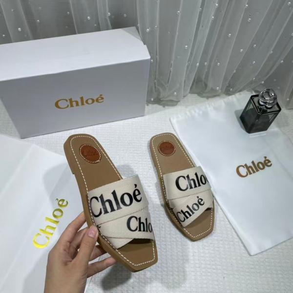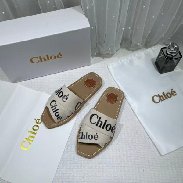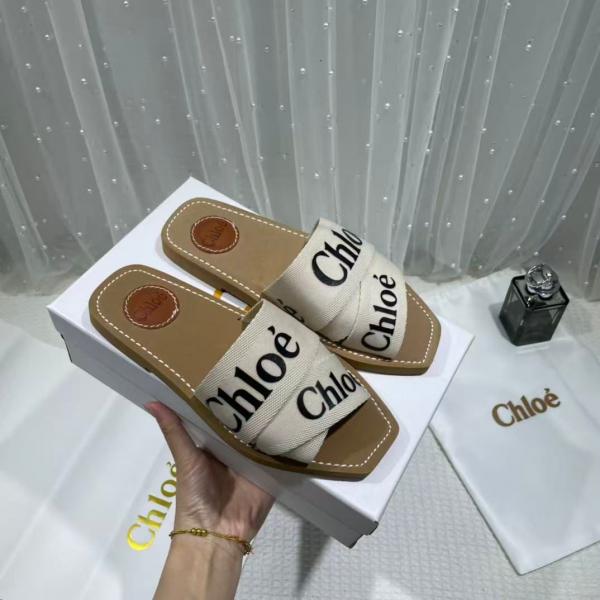 Chloe Premium Woody Slides Flats With OG Box Dust Cover White