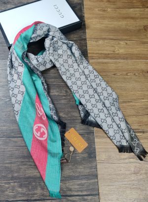 Gucci_Grey_Green_Red_Web_Stripe_GG_Monogram_Luxury_Cotton_Pashmina_Scarf_With_Polythene