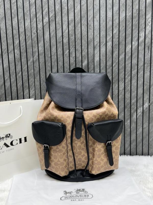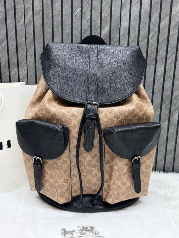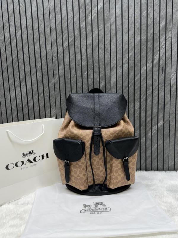 Coach_Warner_Backpack_Signature_Canvas_Coated_Canvas_Leather_With_Dust_Cover_909_Apricot_Black