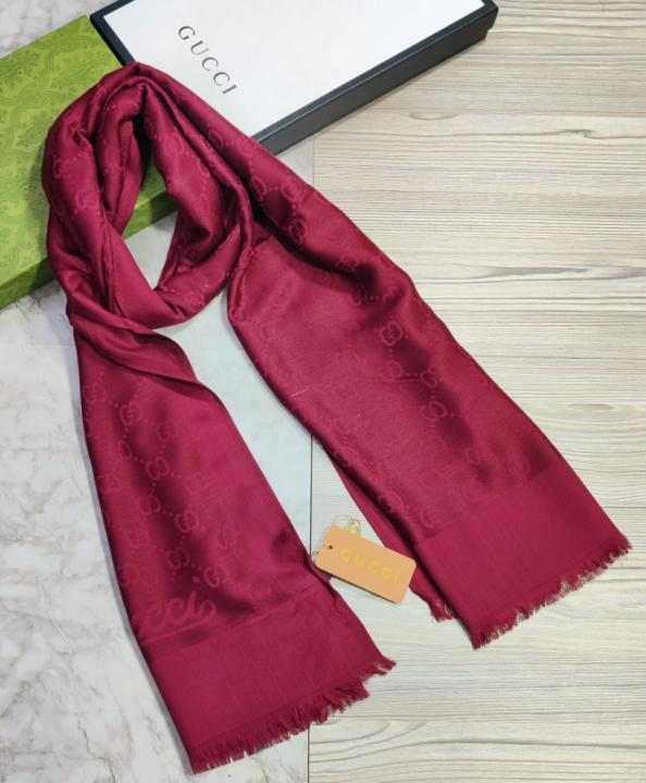 Gucci_Maroon_Burgundy_Tonal_GG_Monogram_Logo_Luxury_Cotton_Pashmina_Scarf_With_Polythene