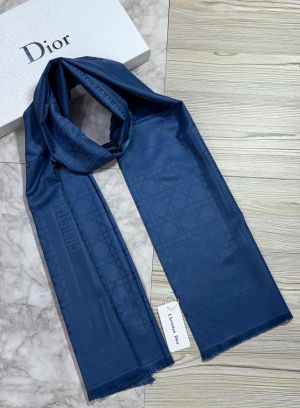 Christian_Dior_Navy_Blue_Tonal_Cannage_Monogram_Logo_Luxury_Cotton_Pashmina_Scarf_With_Polythene